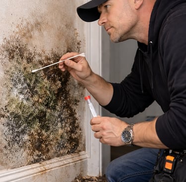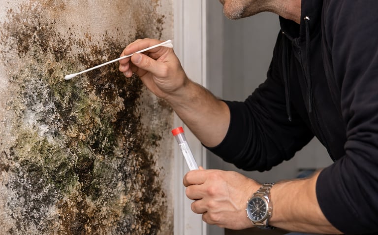 If needed, a swab or tape-lift sample is taken from suspected areas of growth to determine the type and concentration of mold present.